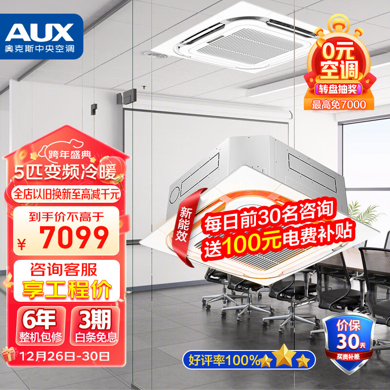 奥克斯(AUX)中央空调 天花机5匹变频冷暖吸顶空调嵌入式吊顶空调商用天井机380V KFR120QW/BPR3YDS(B3)-G 京派价格:7099.00元!