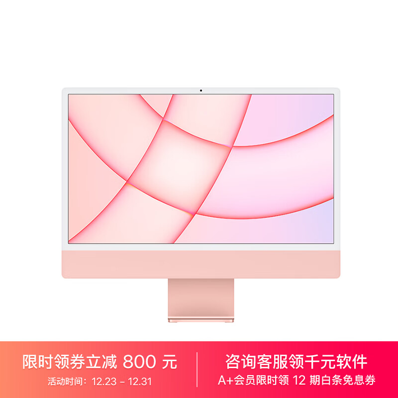 Apple iMac 24英寸 粉色 4.5K屏 八核M1芯片(7核图形处理器) 8G 256G SSD 一体式电脑主机 MJVA3CH/A价格:9999.00元!