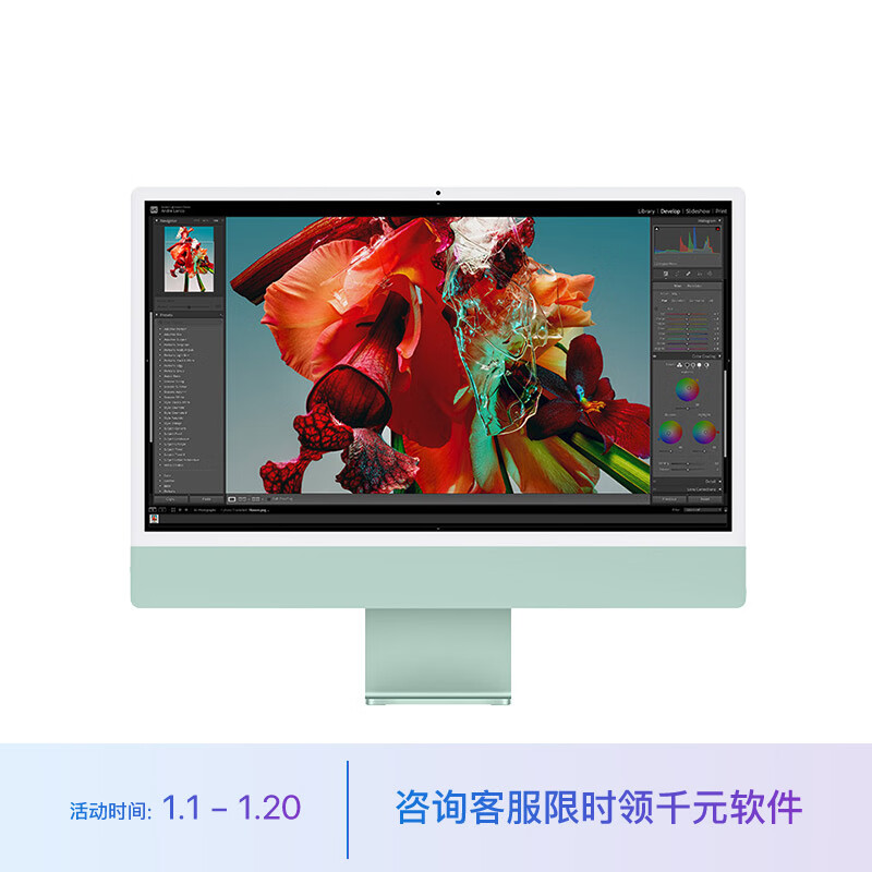 Apple iMac【教育优惠】 24英寸 绿色 4.5K屏 8核M3芯片(10核图形) 8G 256G SSD 一体式电脑主机MQRN3CH/A价格:11699.00元!