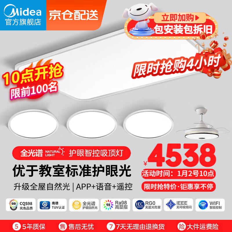 美的(Midea)客厅灯卧室吸顶灯书房儿童房护眼防蓝光led灯饰全光谱智控灯具价格:4538.00元!