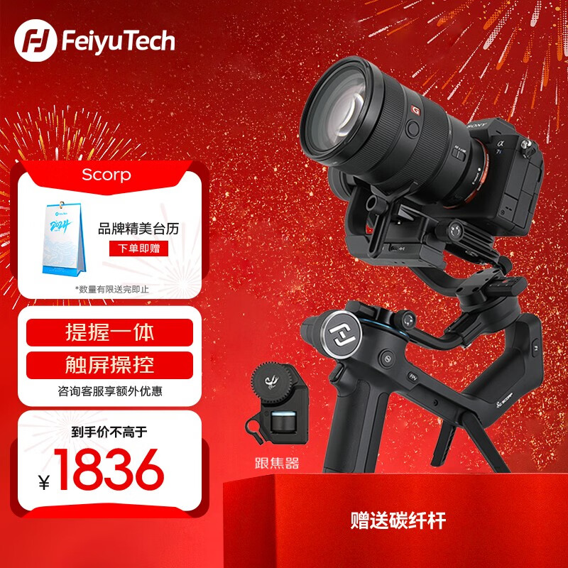 FeiyuTech飞宇 Scorp 微单 单反稳定器 飞宇蝎子手持相机云台稳定器 标配+跟焦器价格:1836.00元!