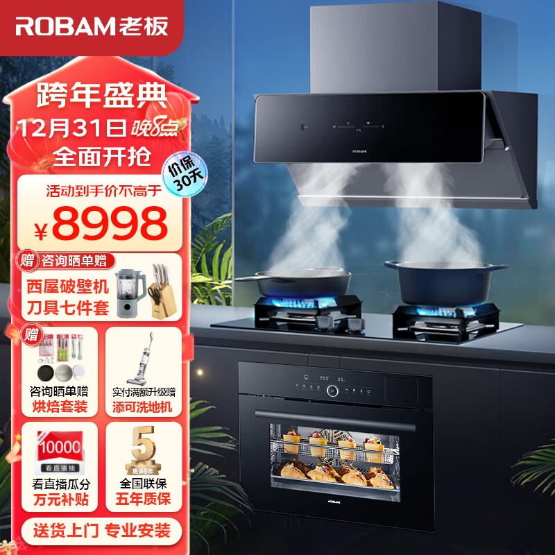 老板(Robam)28D3S+57B2DT+CQ9062D烟灶蒸烤套装厨房多件套一体机嵌入式23m3/min抽油烟机(天然气) 价格:9198.00元!