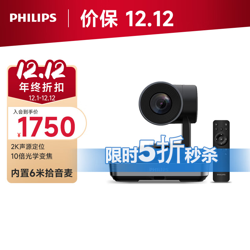飞利浦电脑摄像头 10倍变焦 360°云台定位 2K高清视频会议摄像头USB电脑笔记本台式机视频网课PSE0600价格:3500.00元!