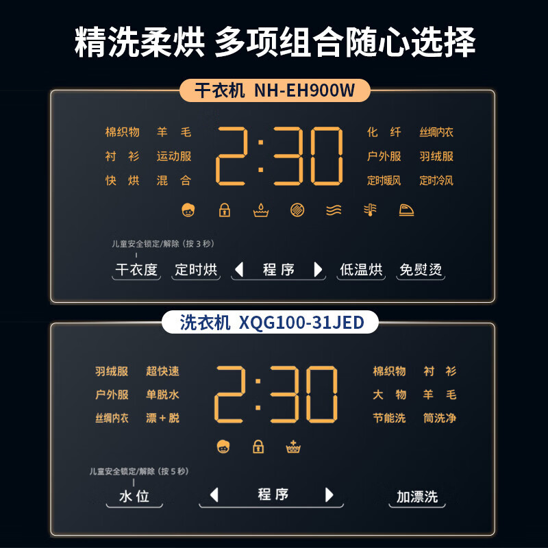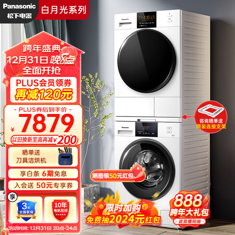 松下(Panasonic)洗烘套装 白月光 10kg滚筒洗衣机+9kg热泵烘干机 原装变频压缩机 羊毛洗 羽绒服烘 31JED+EH900W价格:9899.00元!