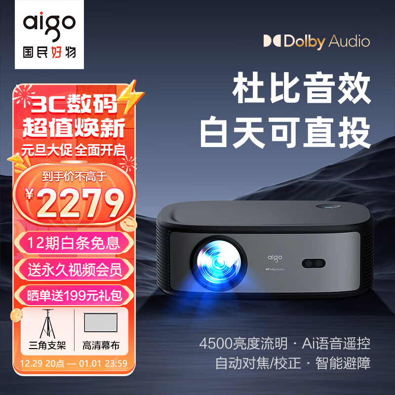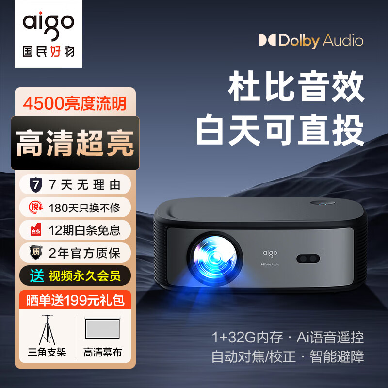 爱国者 H98投影仪家用1080P高清办公投影机家庭影院(4500超亮亮度流明 自动对焦 自动梯形校正 智能避障)价格:2599.00元!