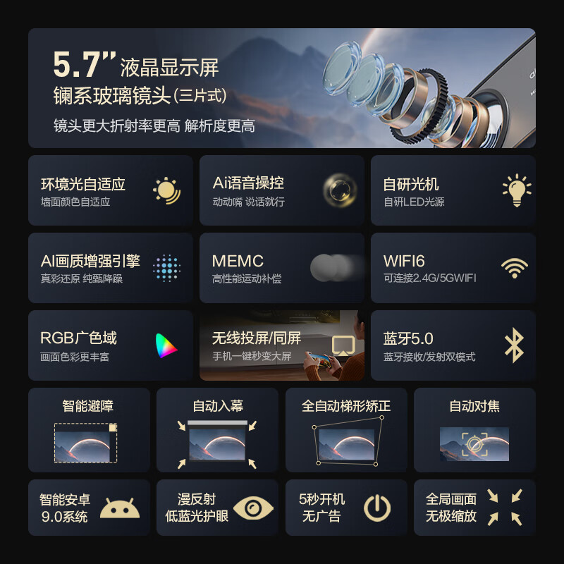 1、非常不错,完全达到了自己想要的效果,拉上窗帘亮度够,晚上效果更佳。比其他要配盒子的方便太多。