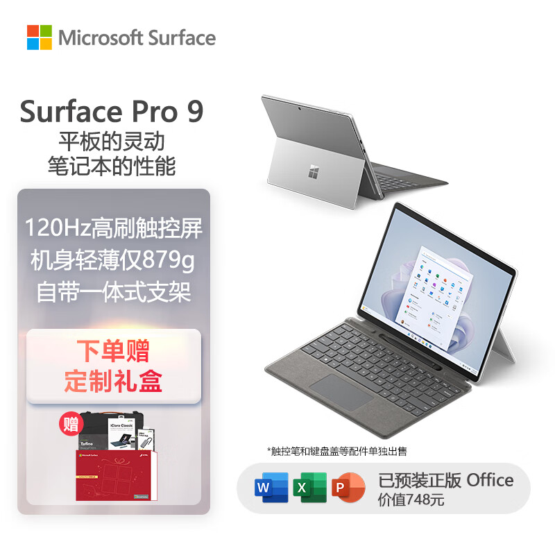 微软Surface Pro 9 二合一平板电脑 i5/8G/256G亮铂金 13英寸高刷触控?教育学习机 高端办公 笔记本电脑价格:6988.00元!