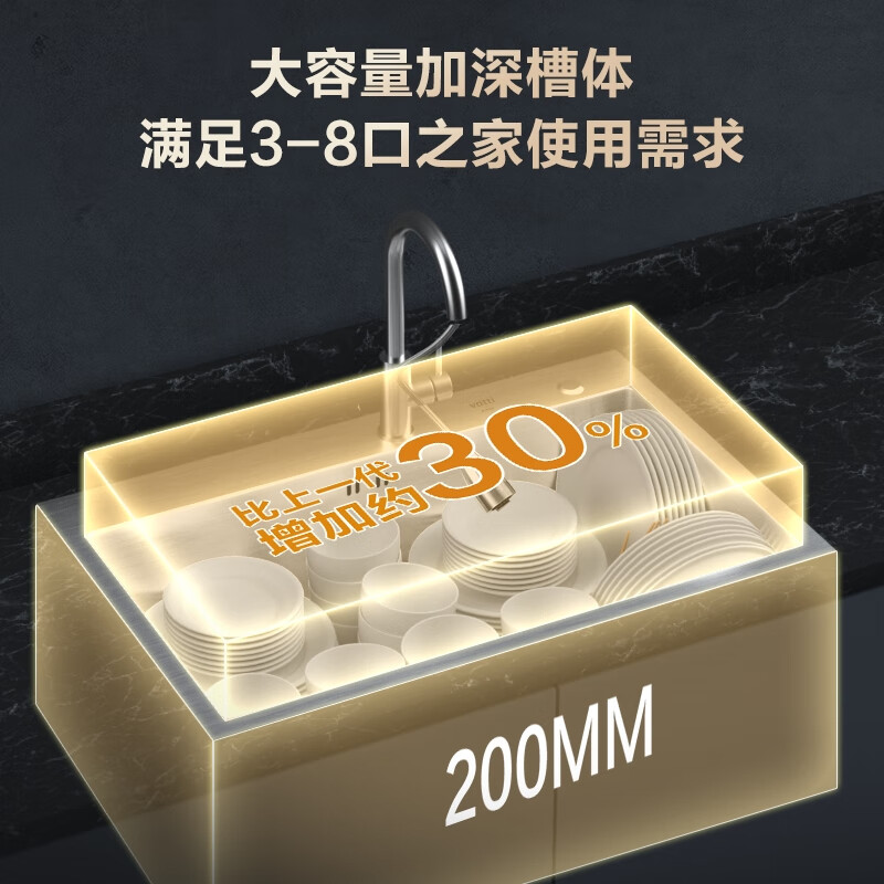 3、水槽很好,美观大方,面板很厚,槽体厚度一般,但家用已经足够。水龙头质量还可以,全不锈钢材质,抽拉顺畅,用一段时间后会来反馈使用情况