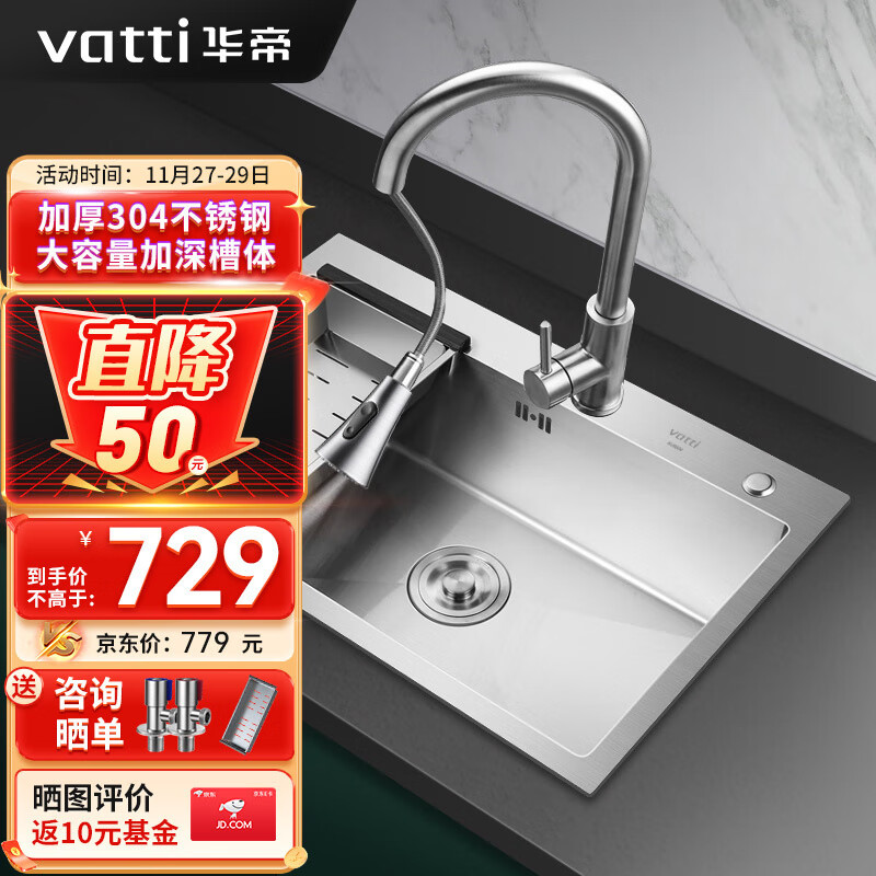 华帝(VATTI)厨房水槽洗菜盆一体盆单槽 大单槽水池盆洗碗槽洗菜池单盘不锈钢价格:1029.00元!