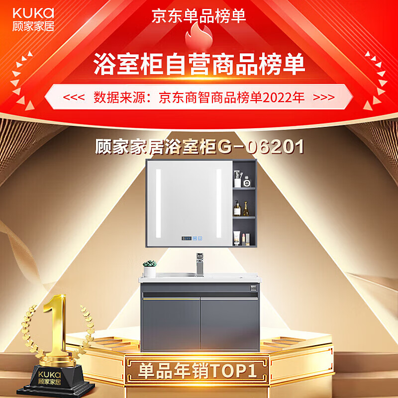 顾家家居(KUKA)浴室柜陶瓷一体卫生间洗脸洗手池盆柜组合洗漱台G-06201B100MLDH价格:2099.00元!