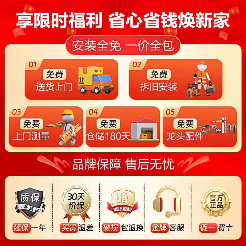 1、实体店看了半天价格要贵快一倍,咨询了下此款材质用的环保板材就直接下单了。三天到货,预约师傅等了两天装完。双十一期间这个效率还是可以的。而且包拆旧包安装,非常满意。