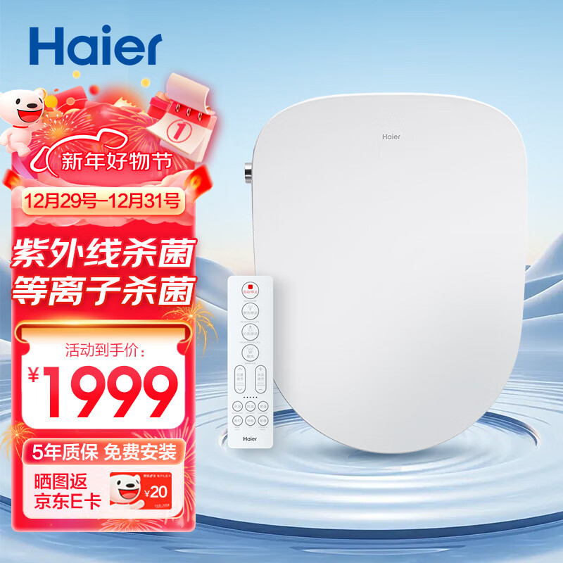 海尔(Haier)智能马桶盖 等离子杀菌款 即热遥控电动加热自动除臭 V6-5229U1价格:2499.00元!