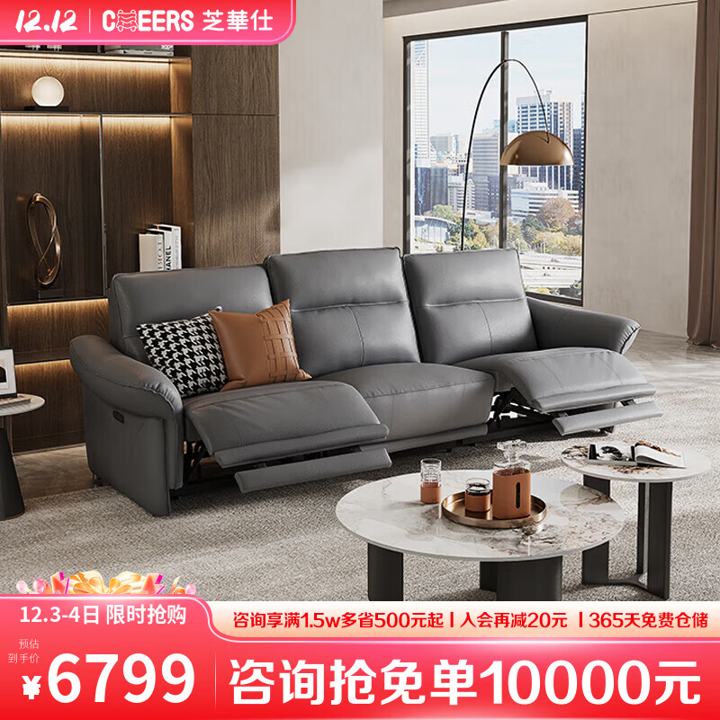 芝华仕(CHEERS)芝华仕头等舱真皮沙发电动功能意式简约 50835 三人位冰岛灰价格:6799.00元!
