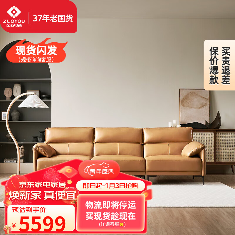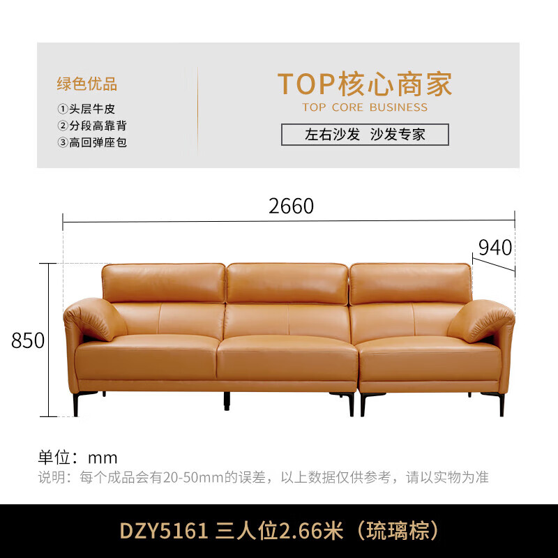 左右沙发现代简约客厅皮艺头层牛皮沙发DZY5161三人位 Y1094琉璃棕价格:6699.00元!