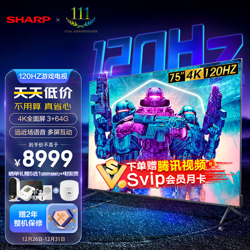 SHARP夏普电视4T-C75S7FA 75英寸120HZ液晶彩电4K屏3+64G游戏电视远近场语音多屏互动平板电视价格:7999.00元!