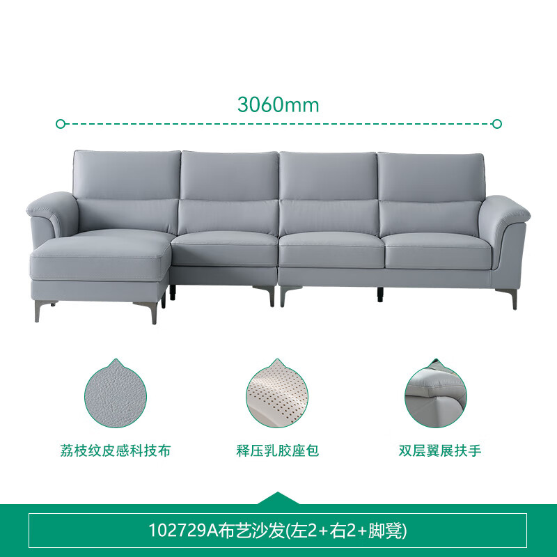 全友家居 客厅简约科技布沙发小户型舒适皮感沙发家具组合102729A价格:4997.63元!