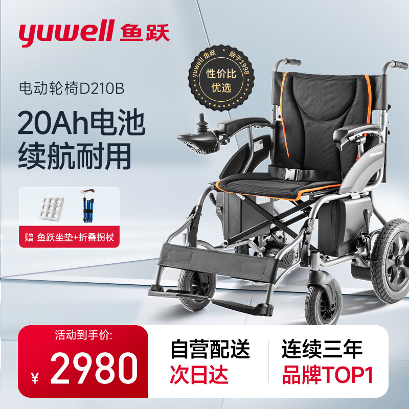 鱼跃(yuwell) 电动轮椅车D210B 老人残疾人家用医用 全自动轻便可折叠代步电动车 长续航(铅酸电池20Ah)价格:2980.00元!