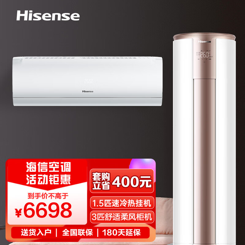海信(Hisense)3匹柜机KFR-72LW/A390-X1*1+1.5匹新一级大风量挂机KFR-35GW/S510-X1*1价格:6698.00元!