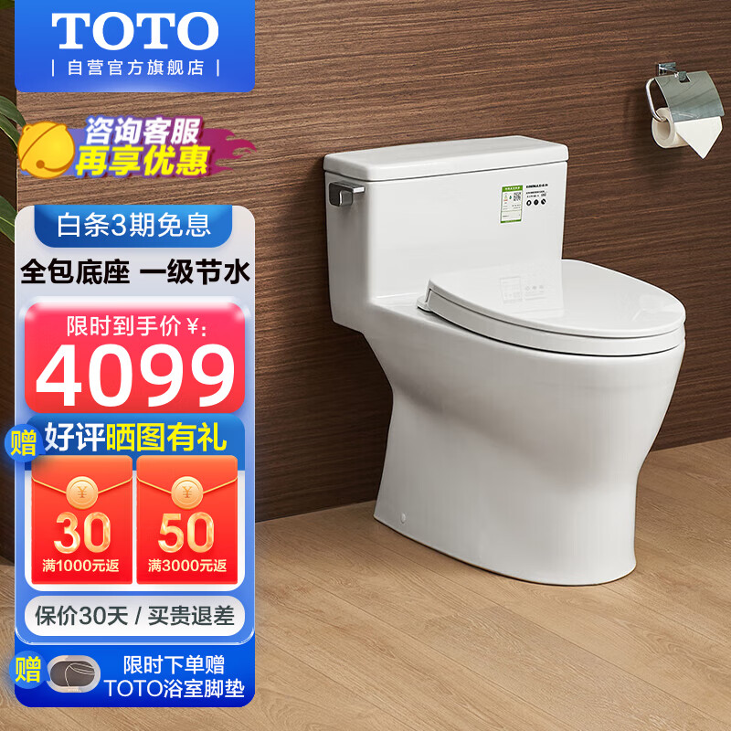 TOTO虹吸式马桶家用冲水坐便器智洁连体3.8L节水防堵座便器188(04-A)价格:4699.00元!