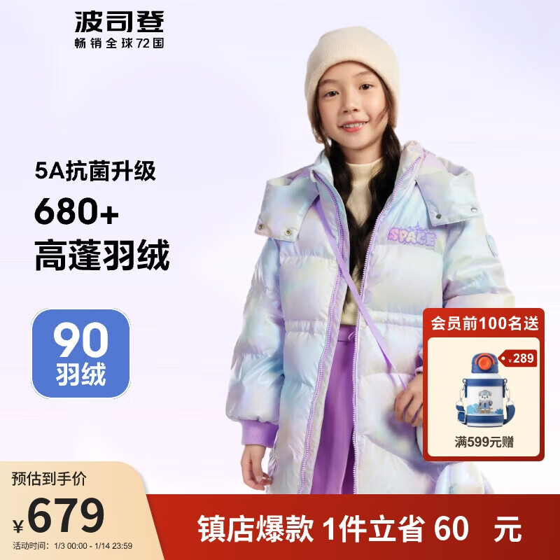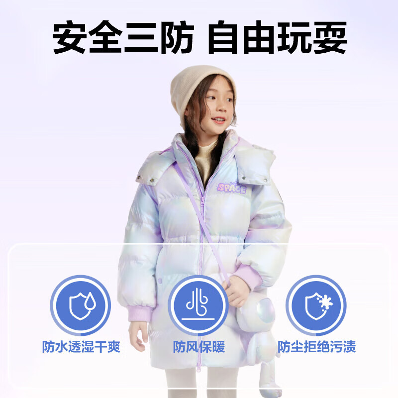 波司登23冬儿童羽绒服女童中长款炫彩连帽防风加厚保暖外套T30145162价格:739.00元!