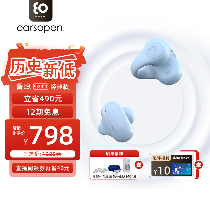 earsopen骨聆SS900真无线骨传导蓝牙耳机运动跑步无线不入耳 蓝色价格:1288.00元!