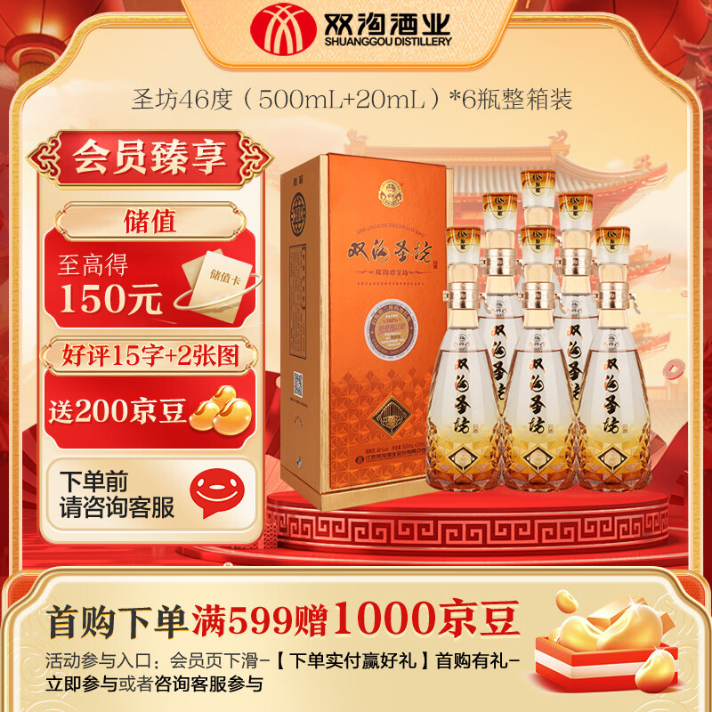 双沟 珍宝坊圣坊 46度 (500ml+20ml) *6瓶 整箱装 浓香型白酒价格:1668.00元!