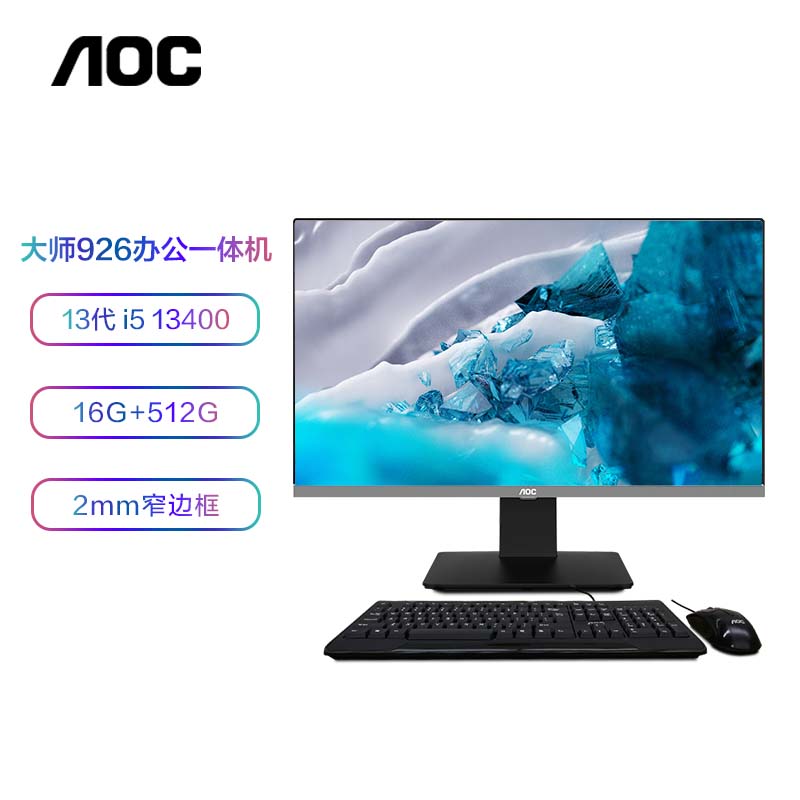 AOC 大师926 23.8英寸高清办公一体机电脑台式主机(13代i5-13400 16G 512GSSD 双频WiFi ) 黑价格:3999.00元!