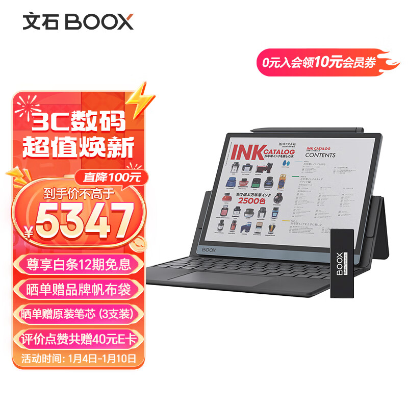 文石BOOX Tab10C Pro 10.3英寸彩色电子书阅读器 高刷智能办公平板 笔芯+键盘保护套套装价格:5347.00元!
