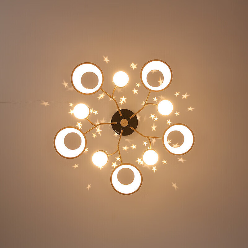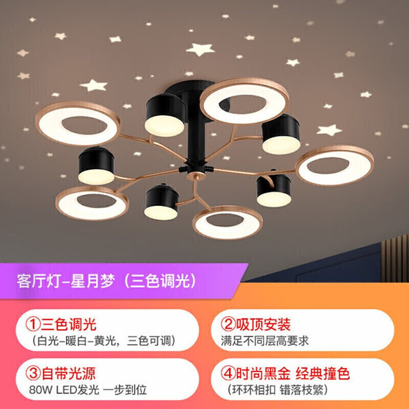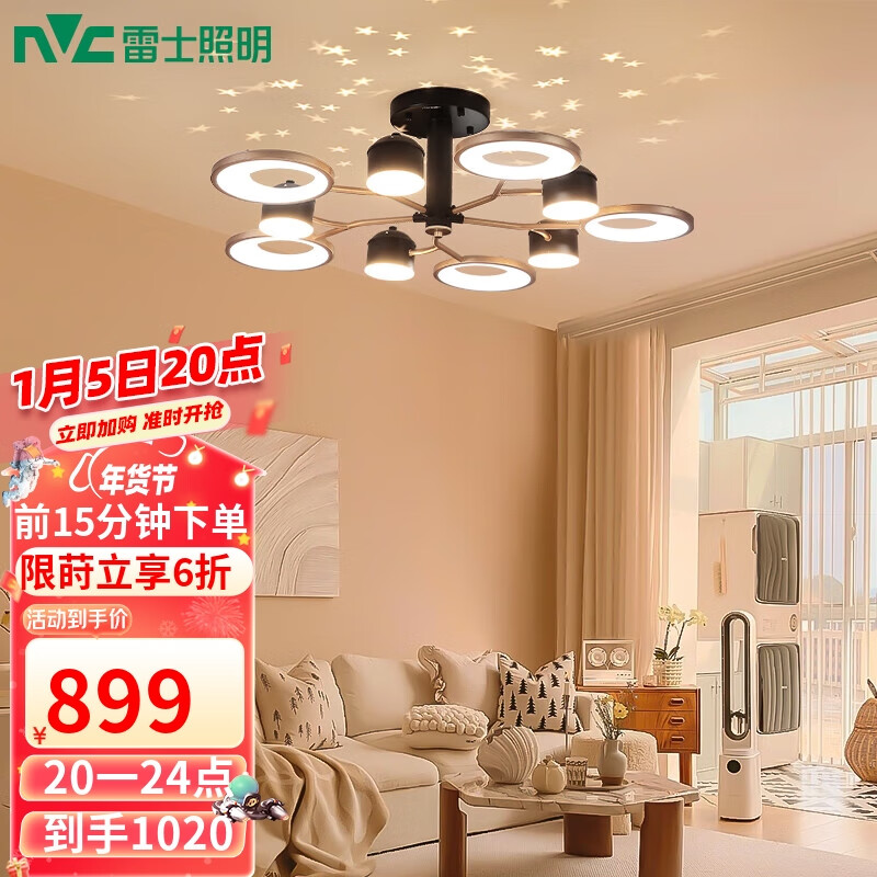 5、雷士照明北欧分子灯设计很时尚,独特投影星空灯很漂亮,非常亮,没有屏闪,不刺眼,四色调光非常漂亮,特别是夜灯模式很好看,满天星光