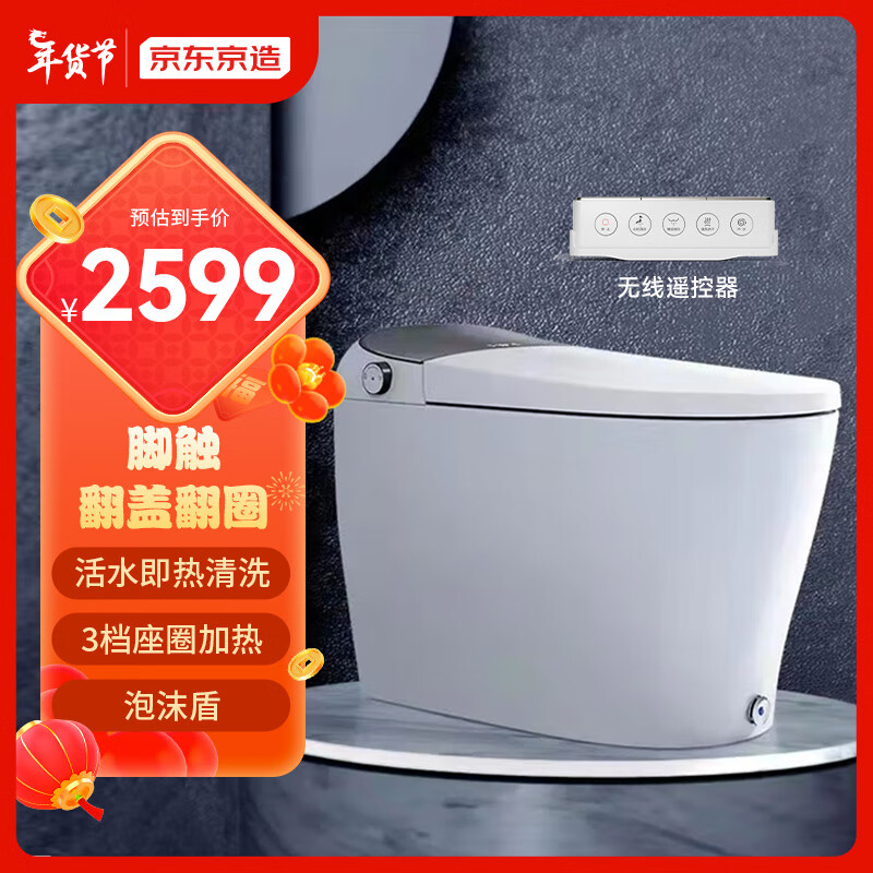 京东京造黑鲸智能马桶一体机 脚踢翻盖翻圈 自动感应冲水 泡沫盾 妇洗臀洗价格:2799.00元!
