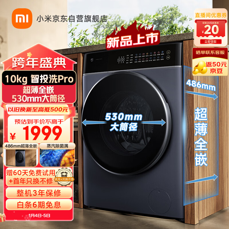 米家小米【精华洗】10公斤智投洗滚筒洗衣机全自动 超薄全嵌大筒径 智能投放 1.1高洗净比 XQG100MJ303价格:1998.00元!