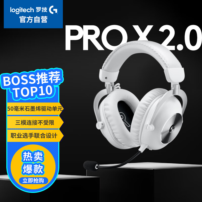 罗技(G)PRO X 2.0 LIGHTSPEED无线头戴式游戏耳机 职业选手联合设计 环绕声 降噪麦克风 吃鸡 白 A00181价格:1999.00元!