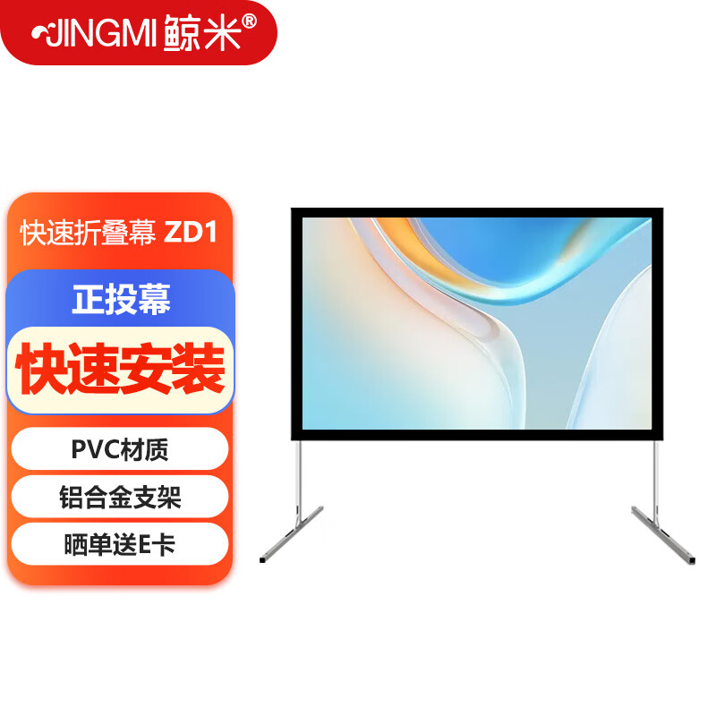 鲸米(JINGMI)120英寸16:9快速折叠投影幕布ZD1白色软幕户外便携移动金属支架投影仪正投屏幕价格:2699.00元!