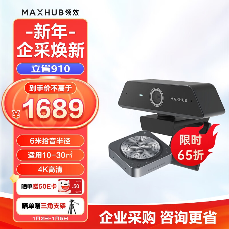 MAXHUB视频会议解决方案套装6米拾音半径全向麦克风BM31+1300万4K高清会议摄像头UC-W20快速对焦价格:1689.00元!