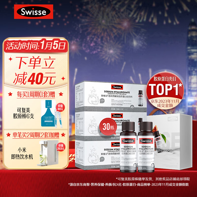 Swisse斯维诗 30天嘭弹水光肌礼盒(水光瓶10瓶*3盒)热巴同款 每瓶5100mg胶原蛋白肽含玻尿酸烟酰胺 年货送礼价格:639.00元!