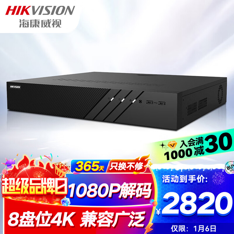 海康威视监控硬盘录像机 32路8盘位兼容8T监控硬盘 支持800万摄像头接入 4K高清网络监控主机 DS-8832N-R8价格:3000.00元!