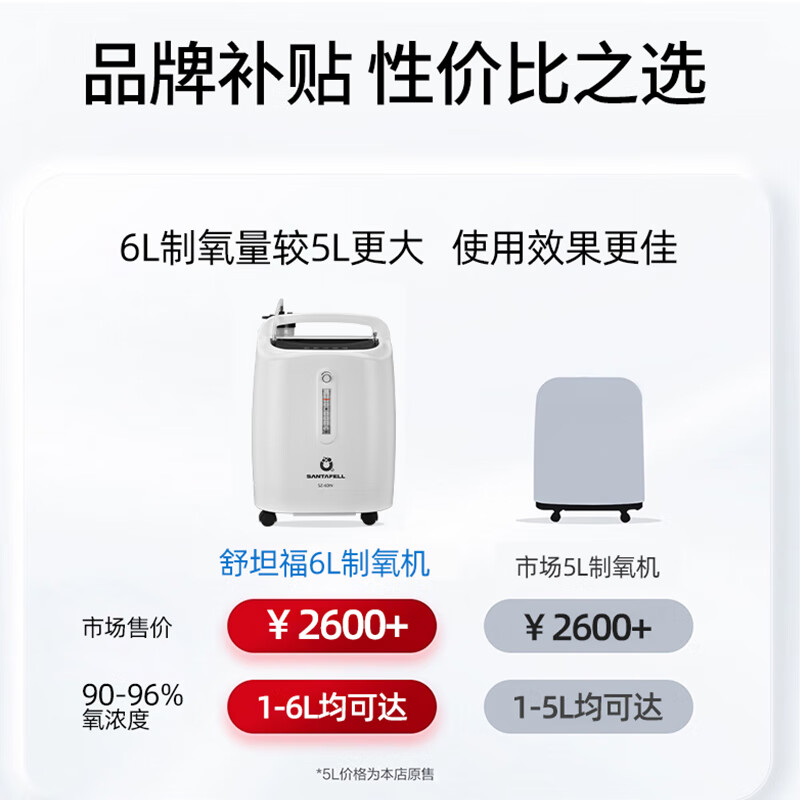 舒坦福【制氧12年】6L升医用制氧机家用老人吸氧机呼吸氧气机轻音医疗级哮喘医护高原便携式带雾化SZ-6DW价格:3180.00元!