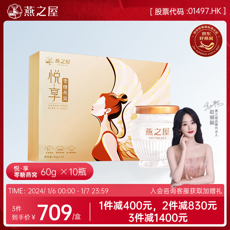 燕之屋鲜炖燕窝即食燕窝【年货送礼礼盒】悦享无糖燕窝60g×10瓶礼盒装孕妇补品营养品月子礼物送老婆礼物价格:1699.00元!