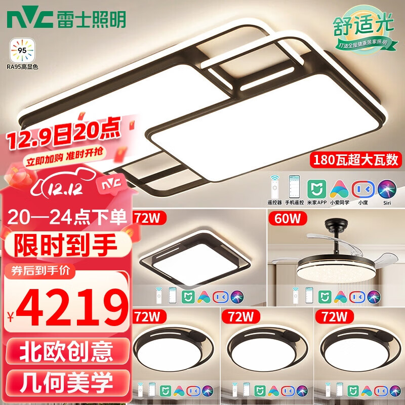雷士(NVC)LED后现代LED吸顶灯大气北欧创意 房间灯智能Ra95-拾艺智控大尺寸价格:4899.00元!