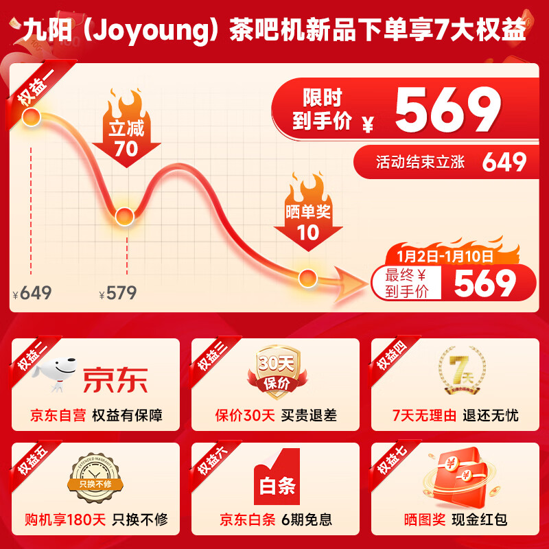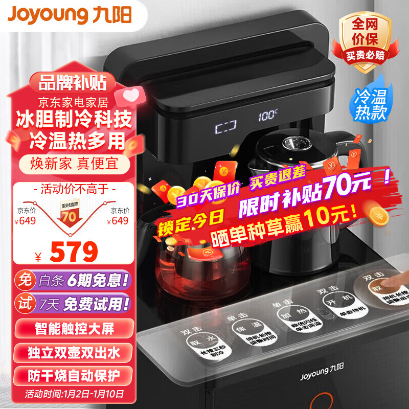 九阳(Joyoung)茶吧机 高端家用客厅多功能智能全自动上水立式饮水机 【24小时保温】拉丝雅黑 WH190 全新升级【智能大屏触控冷热款】一键专温定制价格:649.00元!