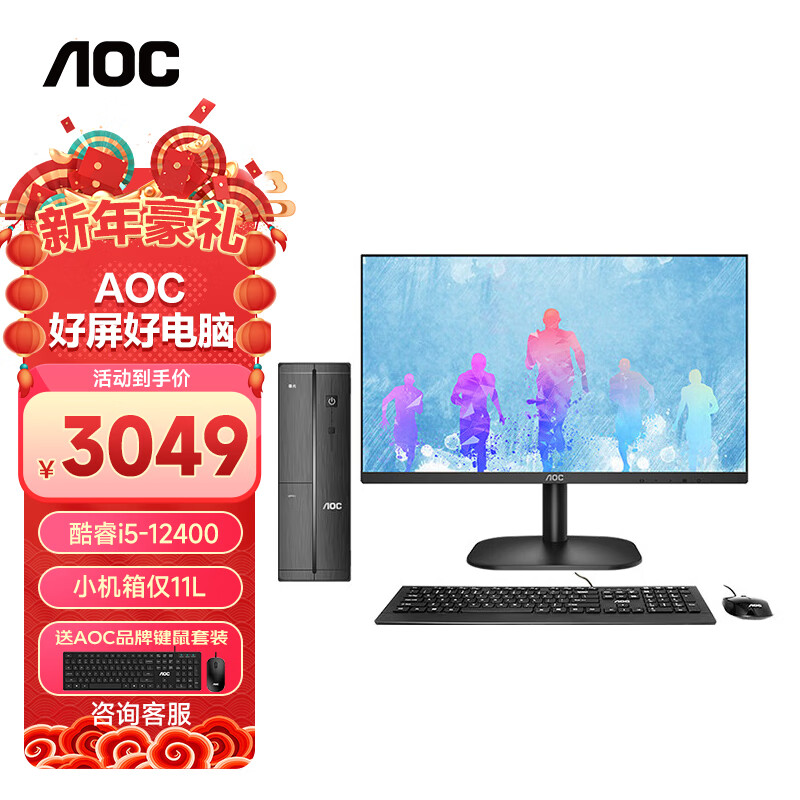 AOC 荣光910 高性能商用小机箱 办公台式机电脑主机(12代i5-12400 16G 512G SSD wifi商务键鼠)27英寸价格:3049.00元!