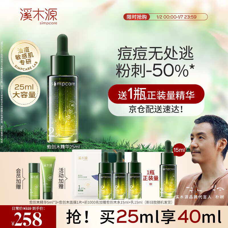 溪木源【大支装】愈创木控油祛痘修护油痘敏感肌无酸救急面部精华25ml价格:319.00元!