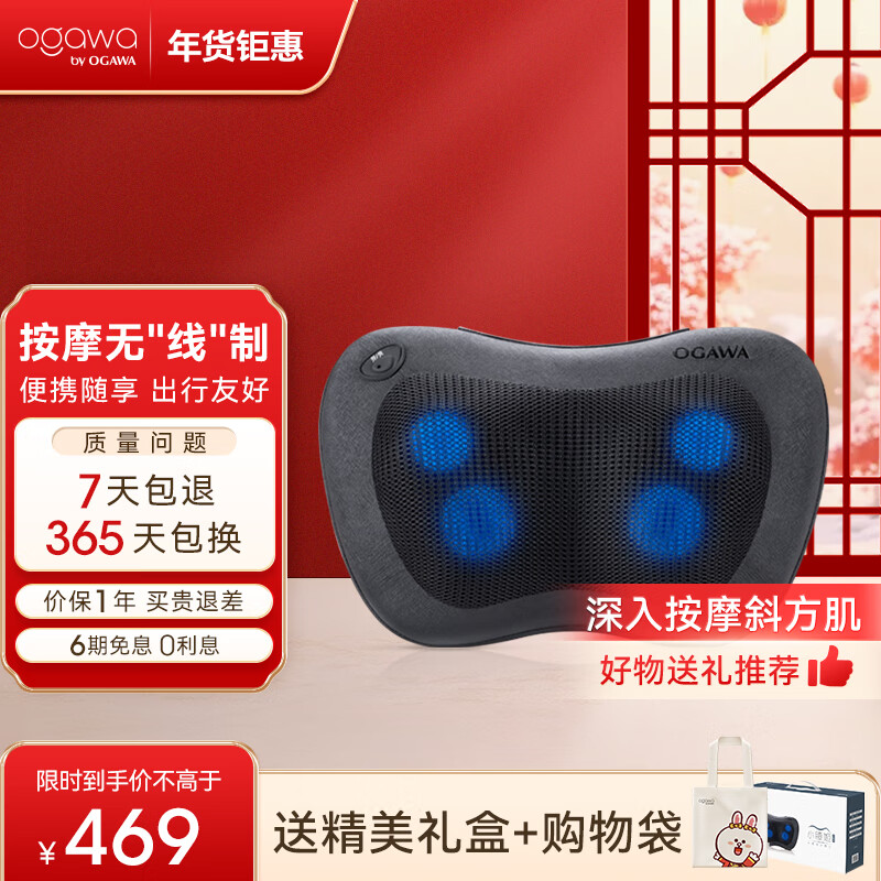 奥佳华(OGAWA)按摩枕颈椎肩颈部腰部按摩仪可全身多功能热敷按摩靠枕家用按摩器小腰姬OG2101节日生日礼物礼盒装 充电版 黑色价格:699.00元!