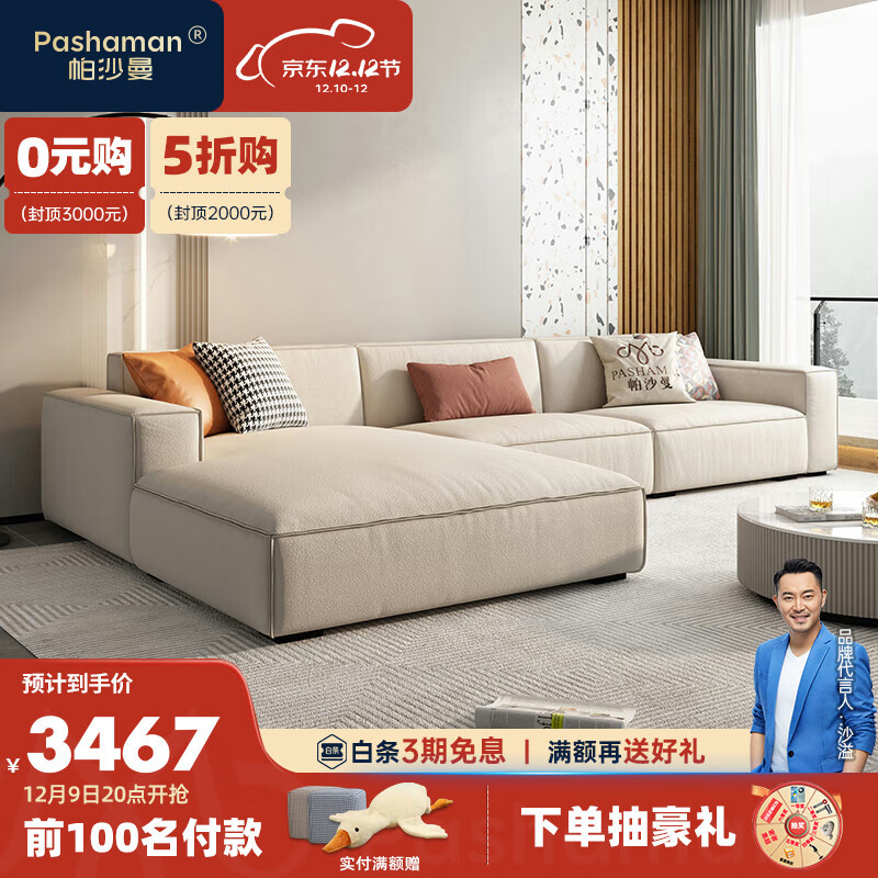 帕沙曼 猫抓布艺沙发现代简约大户客厅奶油风豆腐块科技布贵妃3.1米3185价格:4445.00元!