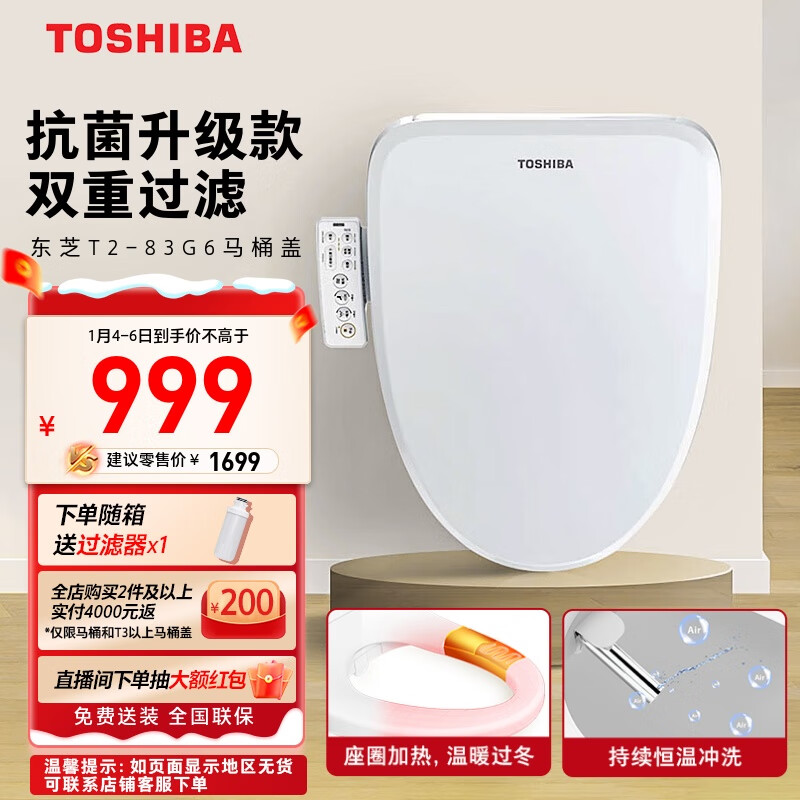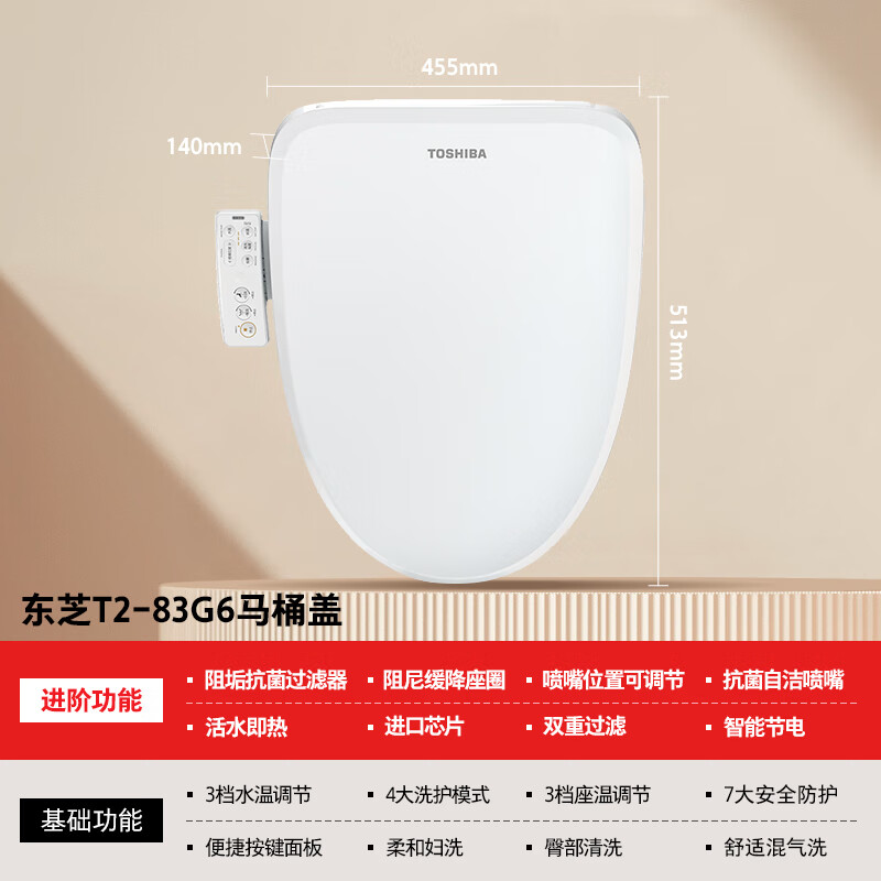 东芝(TOSHIBA)即热式智能马桶盖电动全自动加热坐便盖恒温抗菌马桶圈T2-83G6价格:1099.00元!