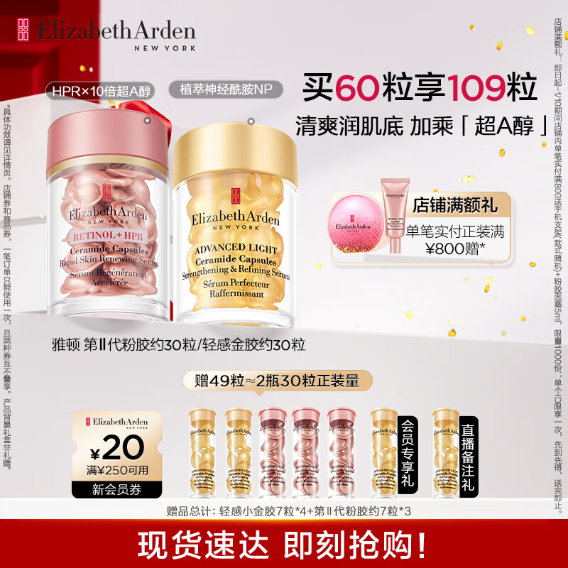 伊丽莎白雅顿第II代粉胶轻感金胶套组神经酰胺次拋A醇胶囊礼物送朋友价格:820.00元!