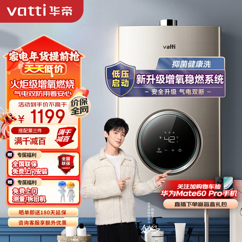 华帝(VATTI)13升燃气热水器天然气节能省气智能恒温气电双断多重防冻低水压启动金色家用i12104-13价格:1199.00元!