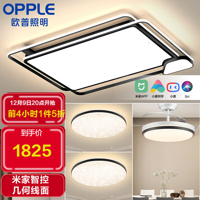 欧普照明(OPPLE)LED吸顶灯 后现代高端超薄客厅卧室餐厅灯具灯饰套餐 智能音箱/AI智控调光 悦然6价格:3829.00元!