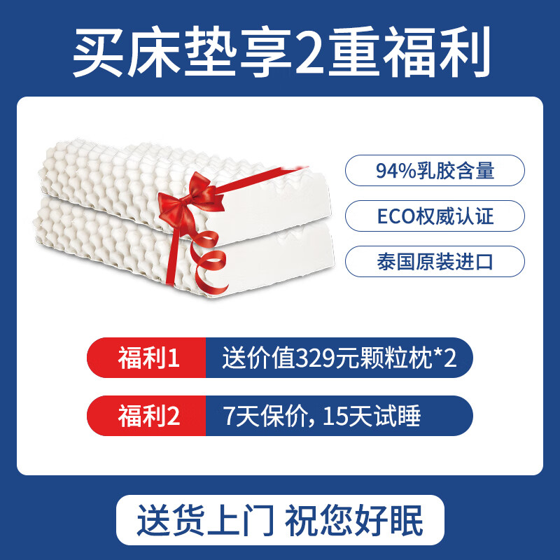 5、在他家我自己买了两床床垫,后来又帮朋友买了一床,昨天又买了一床送给另一个朋友,前前后后买了4床了,东西的确不错,之前自己家买的已经睡了5年多了都没有任何问题,质量还是值得信赖的,而且发货这些也快,当天买第二天就能到手上,现在搞活动一样会送枕头和其它的礼品,蛮不错的!