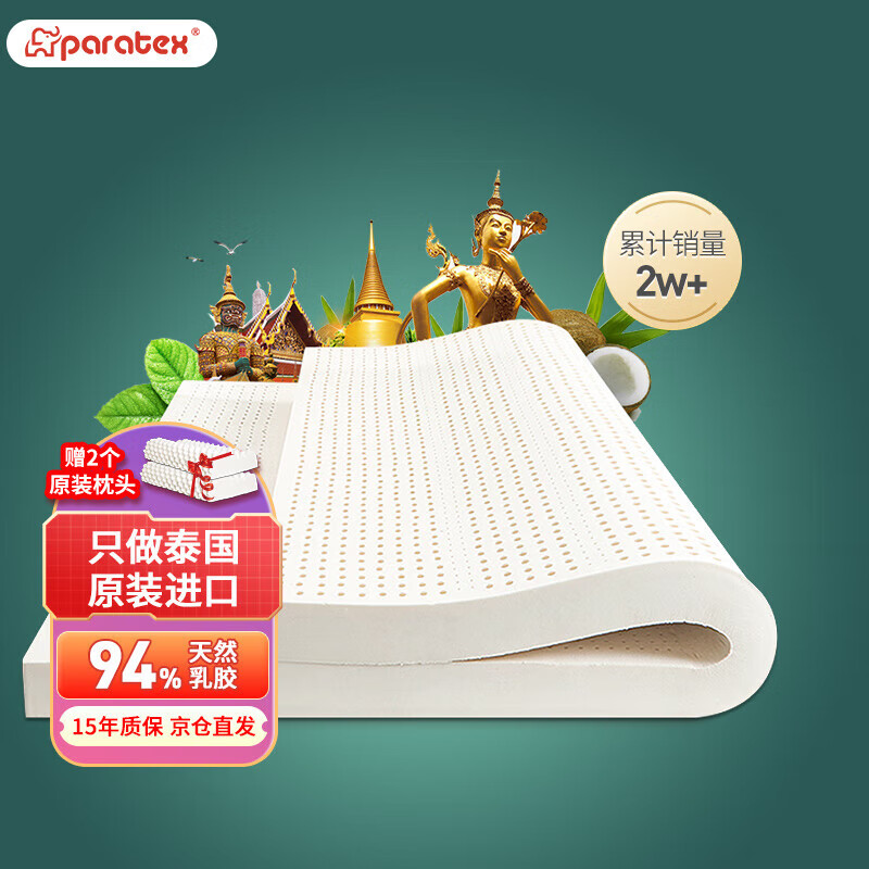paratexECO乳胶床垫 94%含量泰国原芯进口天然乳胶加厚垫 1.5x2米价格:1999.00元!